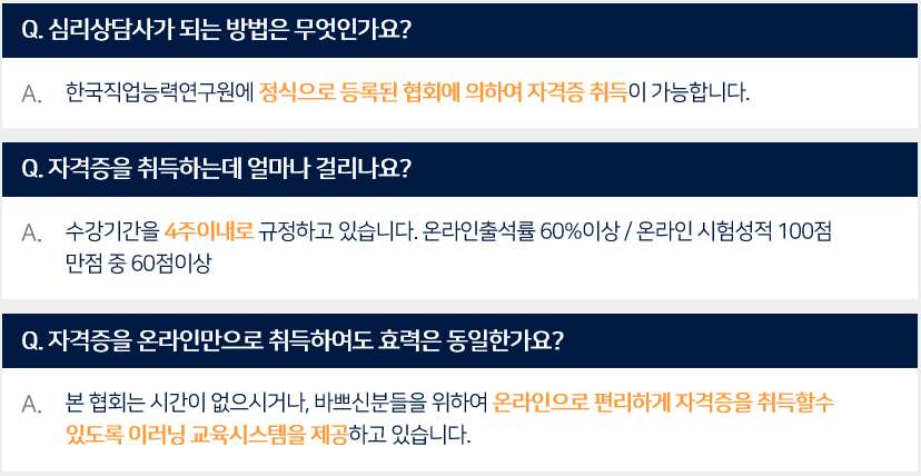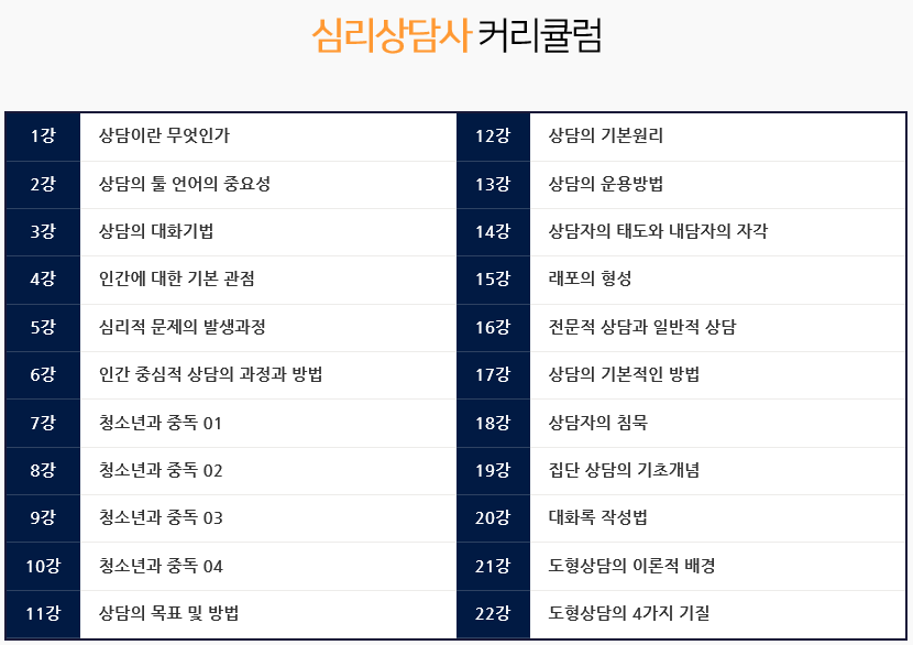 심리상담사자격증자격요건 은 고졸학력 이상 상담의 대화기법, 상담의 기본원리, 상담의 기본적인 방법 등 심리상담에 대해서 공부를 하고 싶은 분들은 누구나 무료로 온라인 수강을 할 수 있습니다.