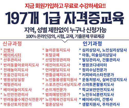 자격증은 편리하게 온라인으로 취득을 할 수 있도록 제공을 하니 스펙업에 필요한 자격증이 있다면 바로 신청하세요.