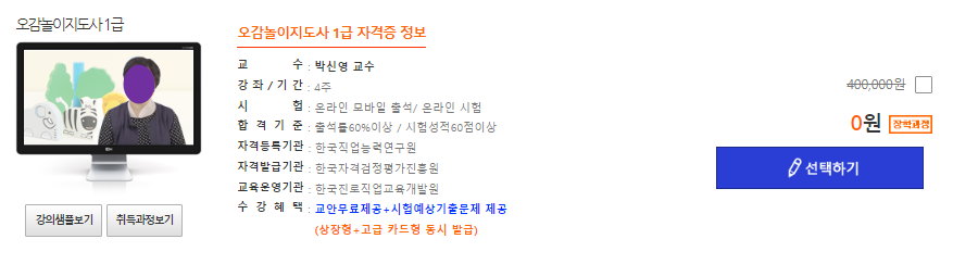 교육원에 운영하는 오감놀이지도사자격증 은 오감놀이지도사2급 이나 3급 자격증이 없는 분들도 오감놀이지도사1급자격증 으로 취득이 가능하고 이력서에 기재도 할 수 있습니다.