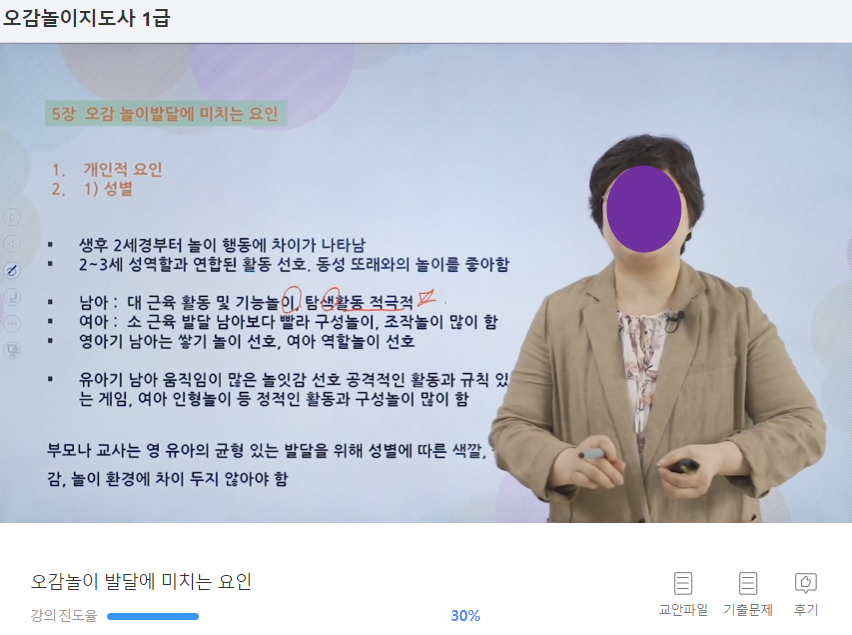 강의는 24시간 오픈이 되어서 자유롭게 수강을 듣고 오감놀이지도사자격증시험 은 온라인 출석률 60% 이상되면 개별적으로 응시가 가능하고 오감놀이지도사시험일정 은 지정된 시험 날짜는 없습니다.