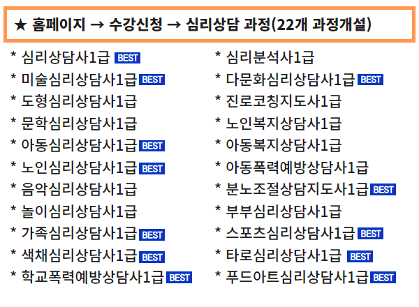수강신청과정은 우리 교육원 홈페이지에 회원가입을 하고 공부할 자격증과정을 수강신청하면 나의 강의실에 교육 과정이 오픈됩니다.