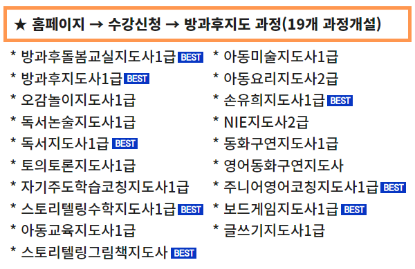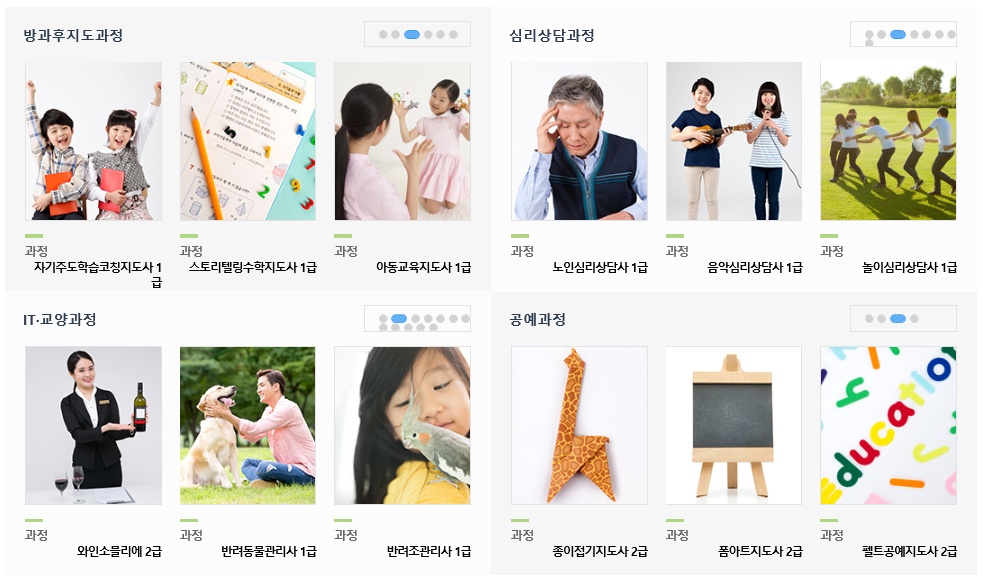 방과후지도과정, 심리상담과정, 교양과정, 공예과정