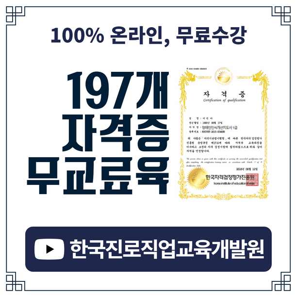 다양한 1급자격과정을 지역이나 성별에 제한 없이 누구나 무료로 교육을 받을 수 있으니 많은 신청 바랍니다.