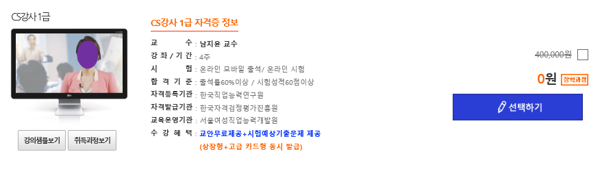강의는 24시간 오픈이라서 자유롭게 공부를 할 수 있고 CS강사자격증시험일정 은 별도로 정해진 날짜가 없어서 개별적으로 CS강사자격증시험 을 응시할 수 있습니다.