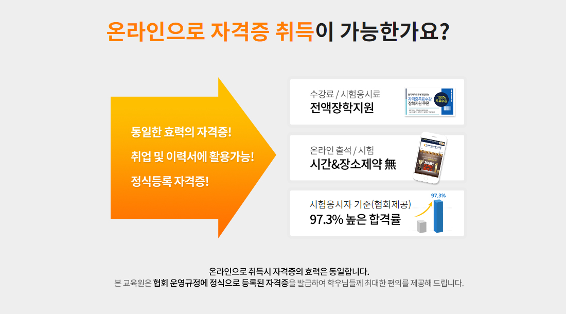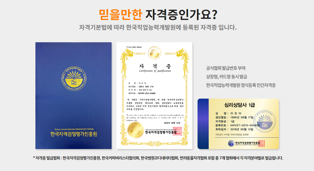 - 단, 시험에 합격을 하고 자격증 발급을 희망하면 발급비는 본인 부담입니다.