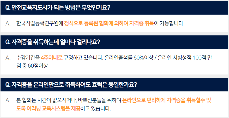 교육은 4주기간 동안 개인 스케줄에 맞춰서 자유롭게 공부를 할 수 있고 안전교육지도사시험 은 학습진도율 60% 이상 충족이 되면 개별적으로 응시가 가능하고 안전교육지도사시험일정 은 따로 없습니다.