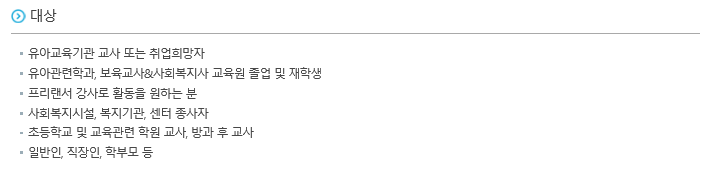 방과후지도과정, 심리상담과정, 교양과정, 공예과정